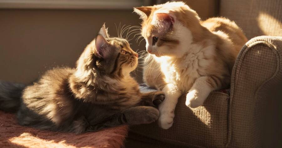 Once both cats display calm behavior during visual introductions, you can try a short face-to-face meeting. Choose a neutral room and leave plenty of space so they do not feel cornered. Let them approach on their own terms. Remain calm and observe closely.